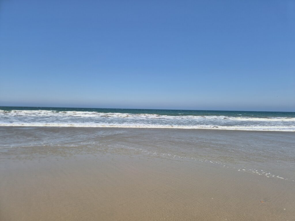 Hors période, et hors week-ends, il faut reconnaître qu’il n’y a pas beaucoup de vie dans le village. On déambulera à plusieurs reprises dans le centre, sans charme, ou sur la longue plage, déjà plus agréable. Camille ne se laissera pas tenter par le surf (flemmingite ?), pourtant c’est un spot assez prisé pour cela.