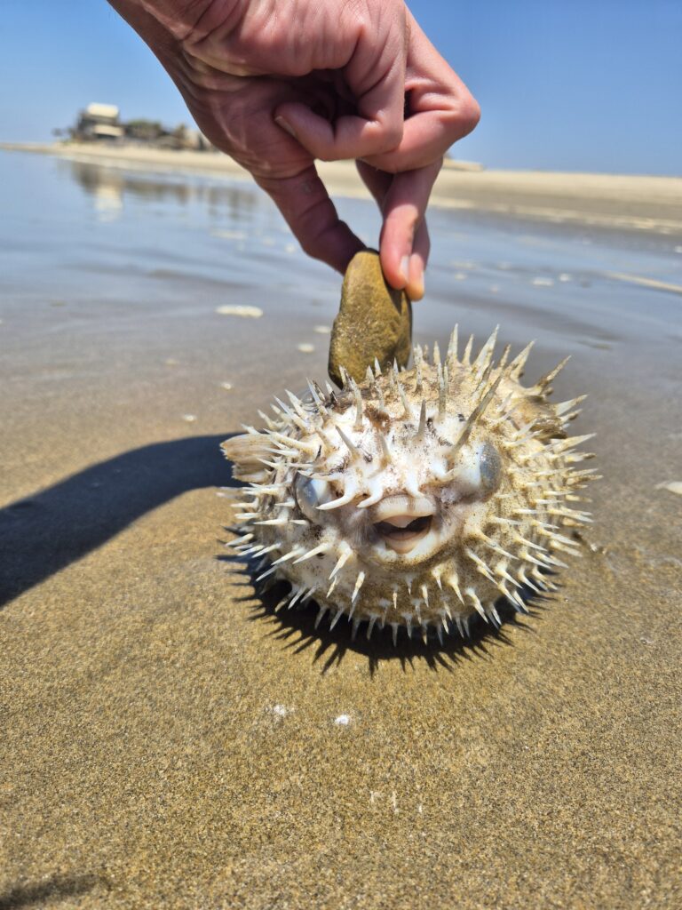 Sur la plage, on croisera notre premier hippocampe et un tétrodon ! Échoués…