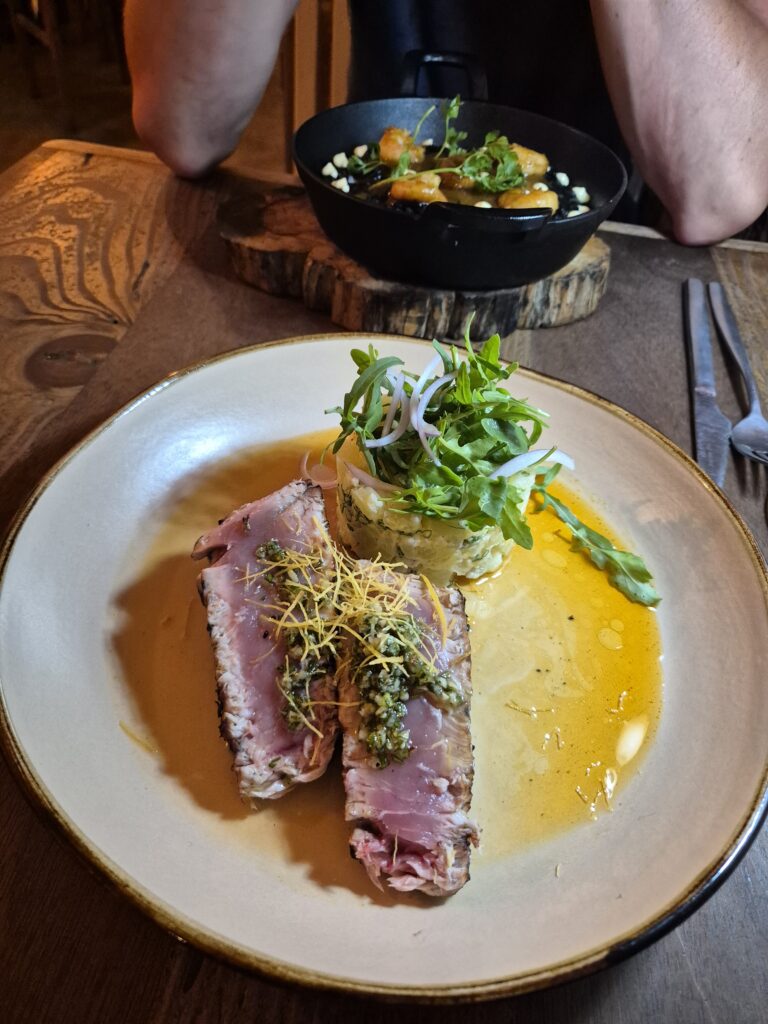 On décide de se faire un bon restaurant, à La sirena de Juan. Alors pour replacer dans le contexte, on s’attendait à revoir le menu à prix abordable qu’on avait croisé la veille, mais ça ne marche pas le soir ! Du coup les plats sont tout de suite bien plus chers (~70-80s) et les portions manquent de générosité. Par contre le lieu est très joli.