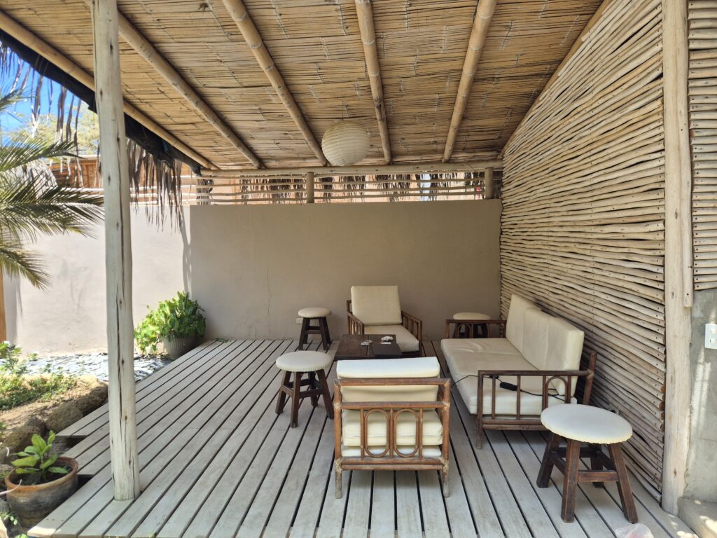 Notre hôtel Casa BLU est un peu à l’écart, l’avantage c’est qu’on est au calme, loin de la frénésie du centre-ville. Nous sommes les seuls hôtes à cette période, on peut ainsi disposer librement des espaces communs, salon et cuisine, à l’extérieur.