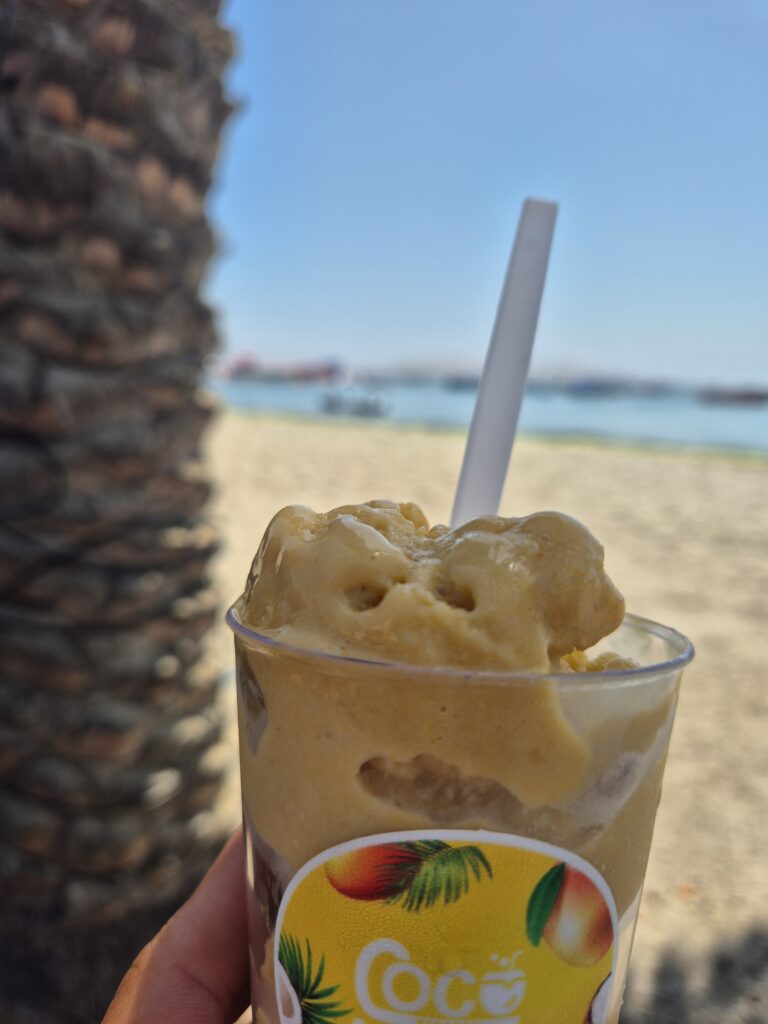 A midi on fait un tour au marché, c’est l’occasion de profiter d’une causa et d’un ceviche. Camille tente également un jus de lucuma, mais à l’eau, c’est un petit peu écœurant sur la longueur.