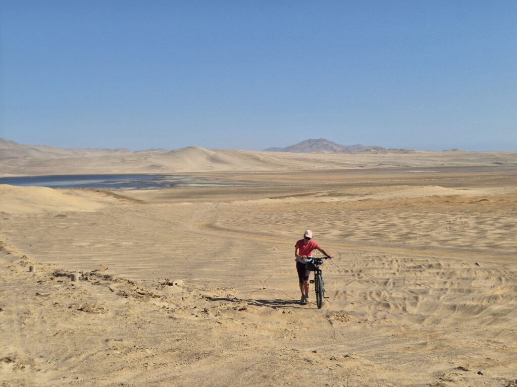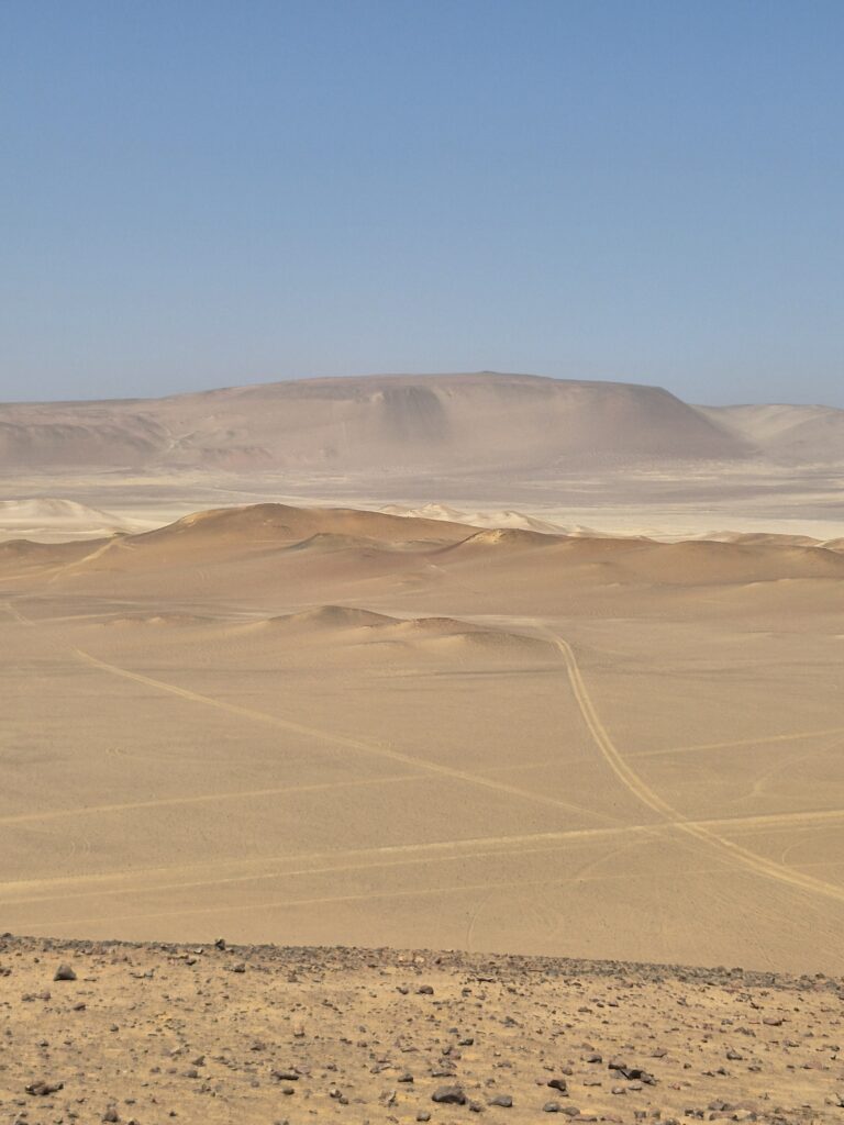 Pour le retour à Paracas, on décide de prendre la route, ce sera plus rapide. John propose de suivre un mini-sillon de motocross qui semble couper au travers avant de disparaître au milieu des dunes. Comme un sentiment de déjà-vu…