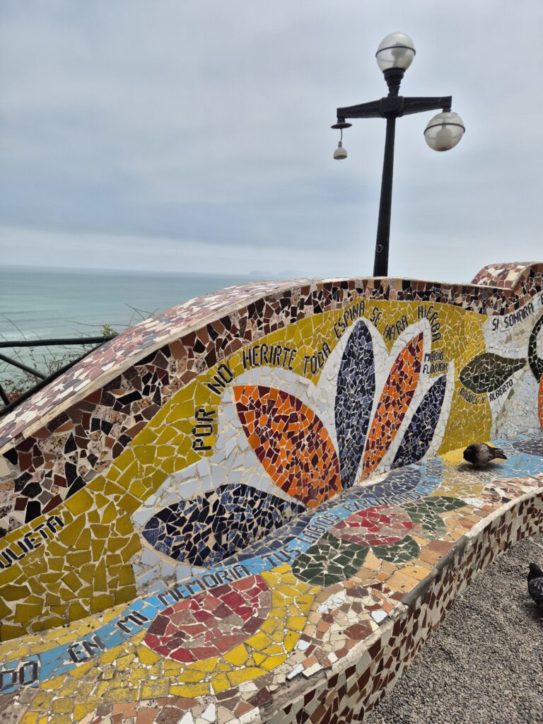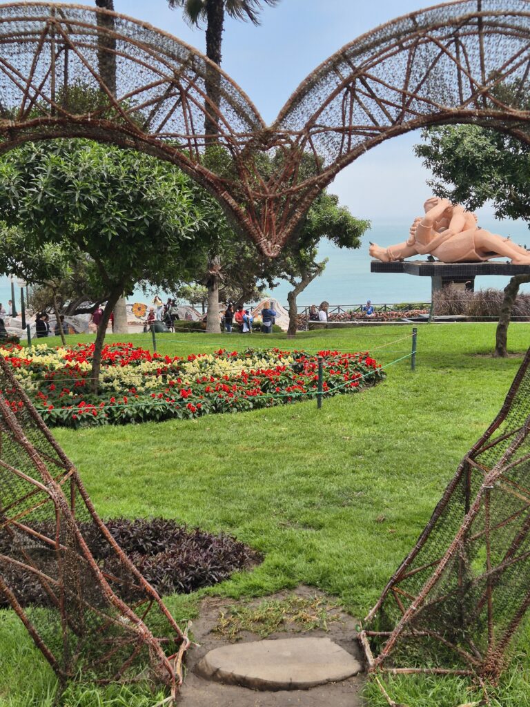 Le deuxième jour, on fait un tour aux quartier Miraflores et Barranco. On part à pied de l’hôtel, avec l’idée de traverser Miraflores et de rejoindre le Malecon (bord de mer). On traverse le parc Kennedy, ou parc des chats. C’est amusant, le parc semble aménagé pour accueillir les chats errants, avec de petits paniers et des gamelles de croquettes.