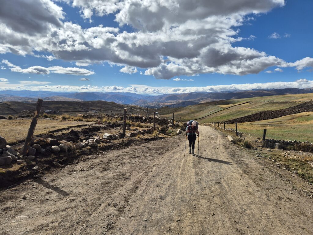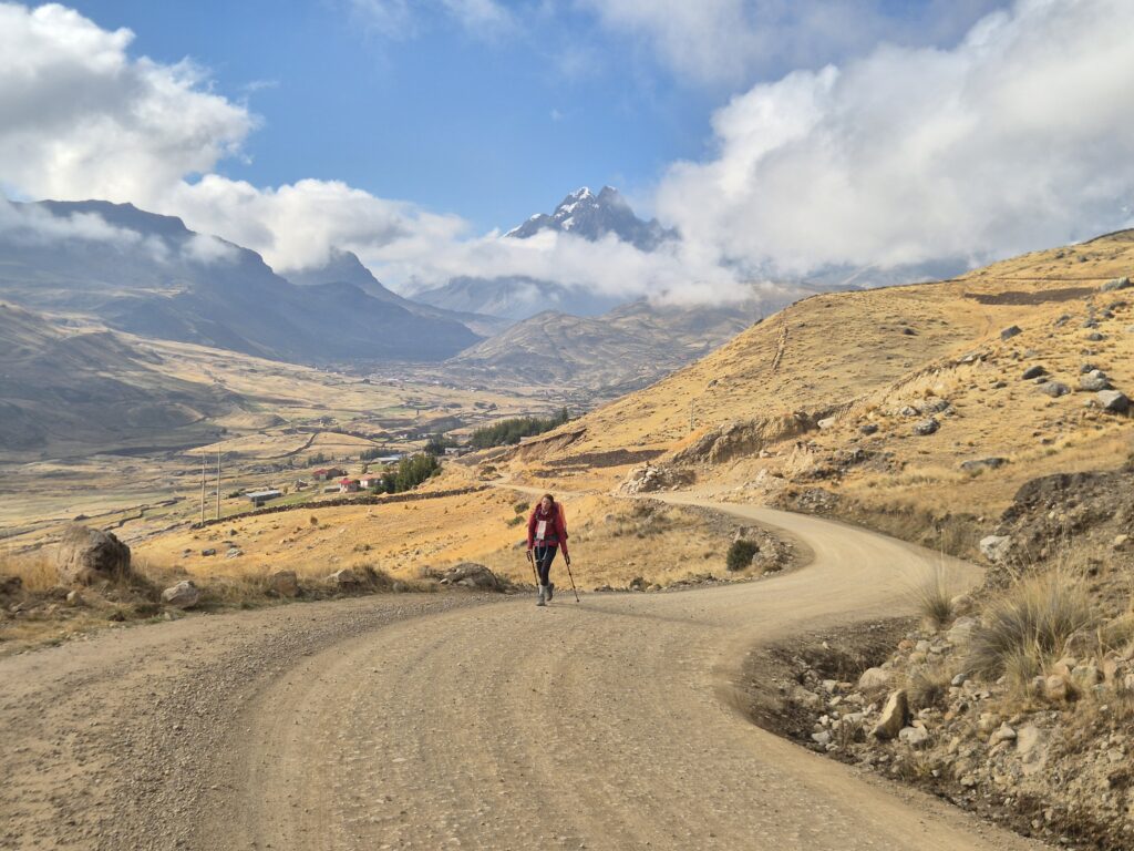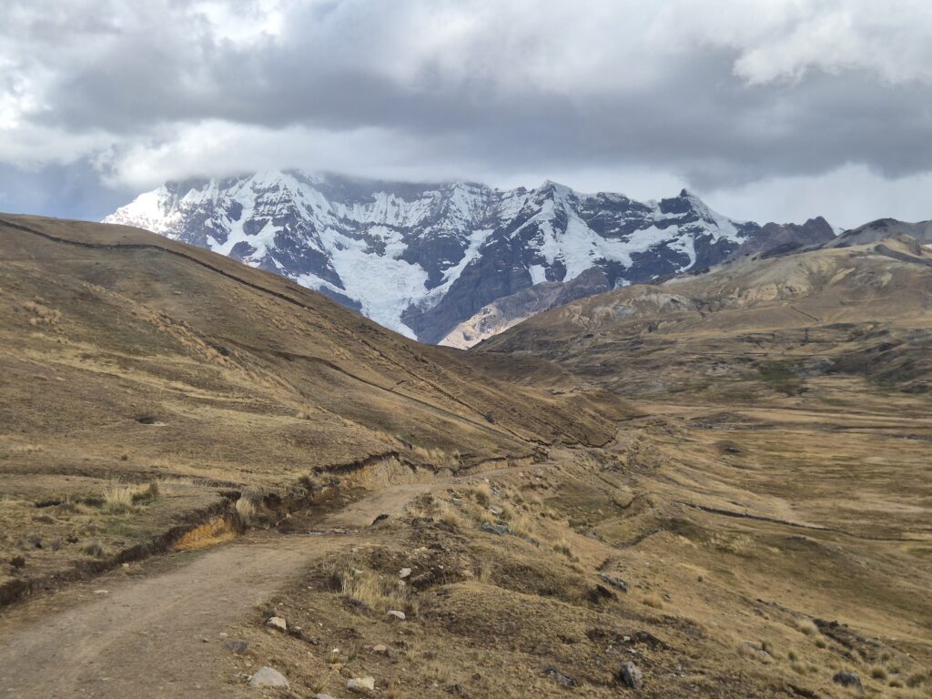 A un certain point, on quitte la route pour un sentier qui suit le cours de la rivière. Le décor est déjà plus sympa, tandis que la montagne de l’Ausangate se rapproche. Le temps commence à se gâter, et on est bien content de rejoindre Upis avant que le ciel ne nous tombe sur la tête.