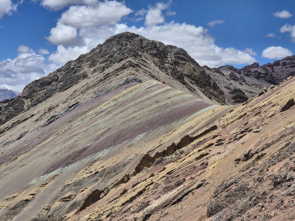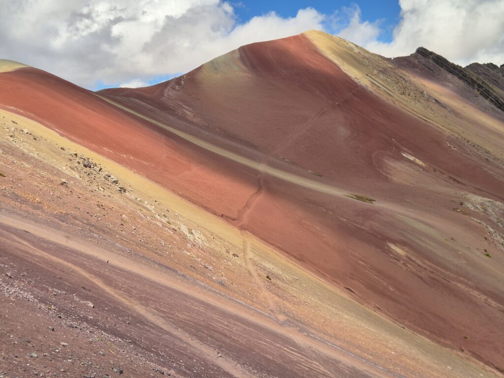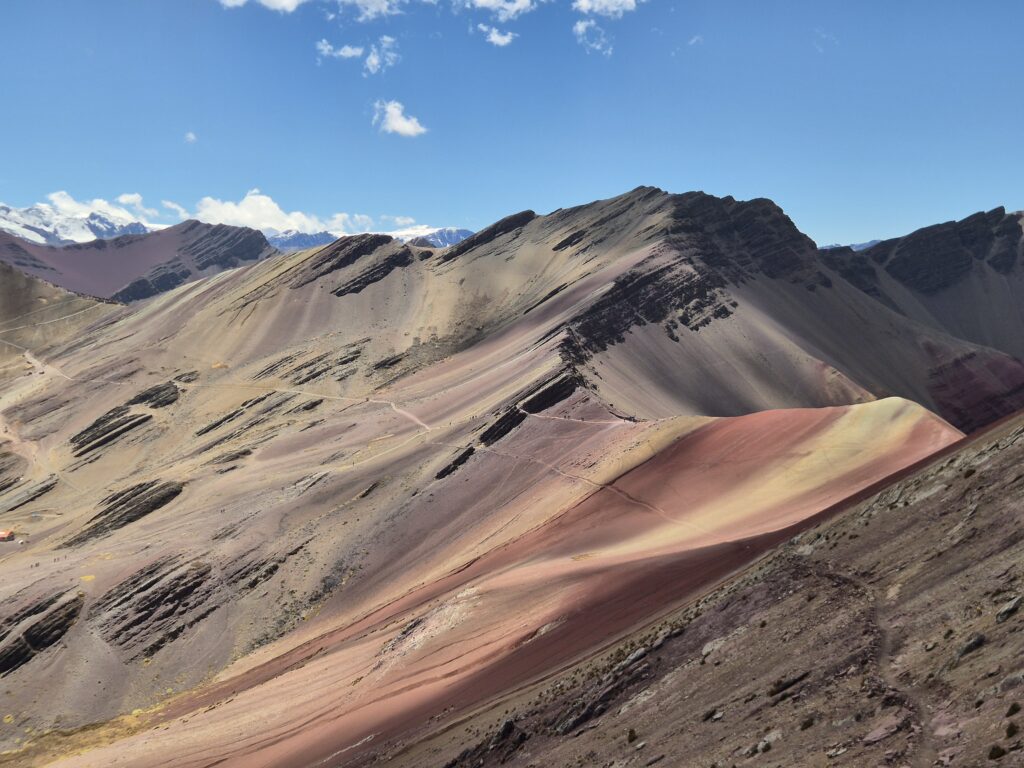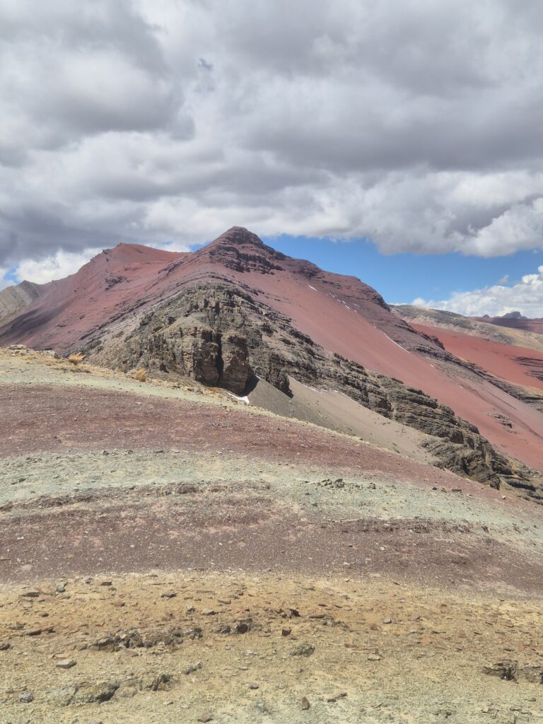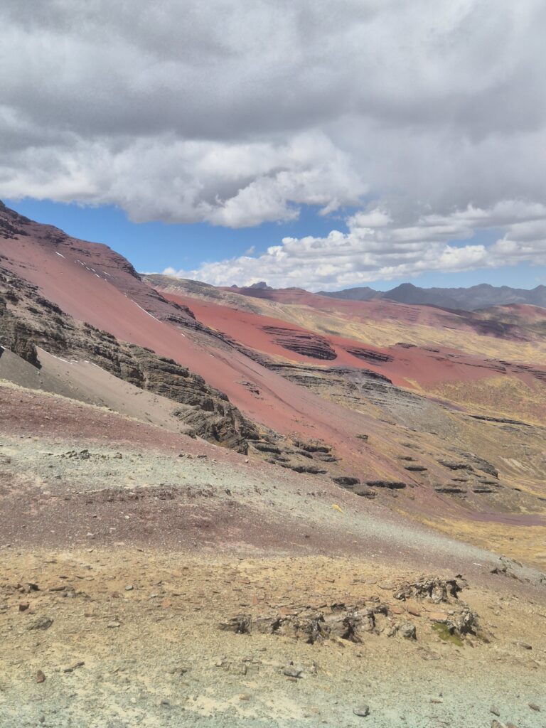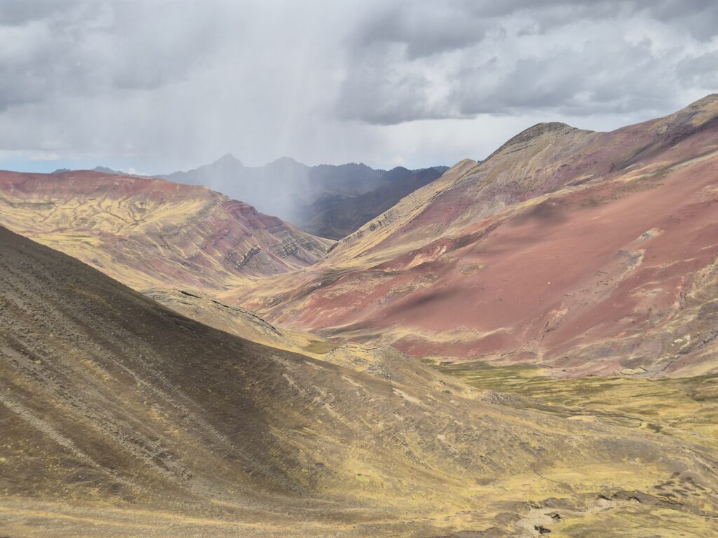 Rapide déjeuner en contrebas, écourté par une petite pluie qui a bien choisi son moment, et on prend le chemin du campement Anantapata. De ce côté du col, c’est un tout autre décor qui s’offre à nous, un véritable avant-goût de la montagne des 7 couleurs. On se demanderait presque s’il est vraiment utile de rejoindre Vinicunca, tant la vue nous offre déjà tout un panel de tons bariolés. Le vent, glacial, interrompt nos pensées, et on poursuit néanmoins notre plan initial.