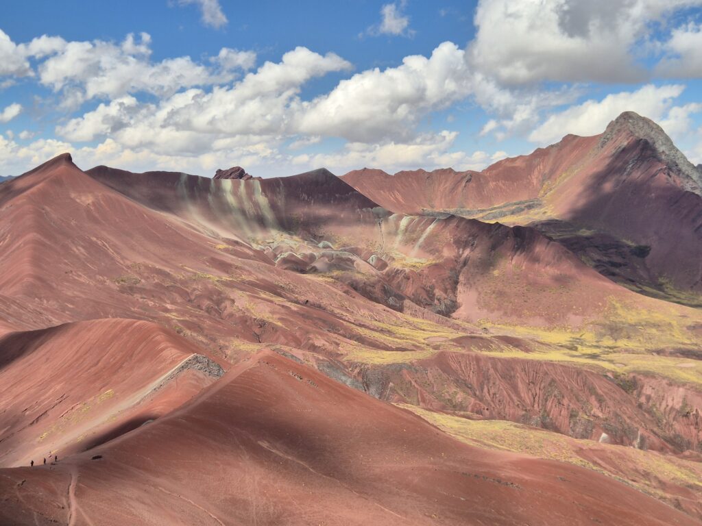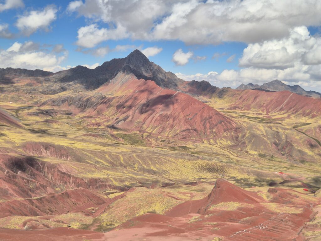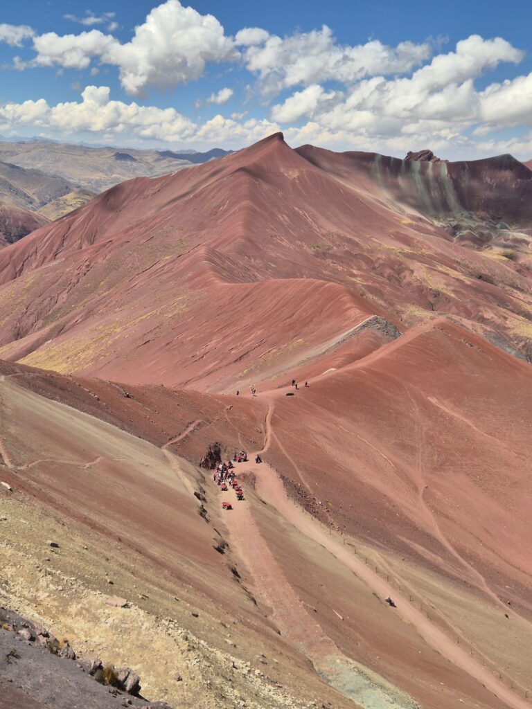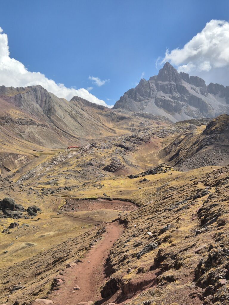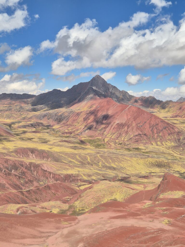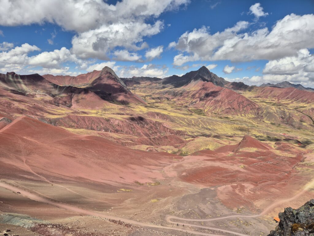 Du col on peut apercevoir au loin Vinicunca. Entre les montagnes, petites lagunes et vallées colorées, c’est un superbe décor qui s’offre à nous.