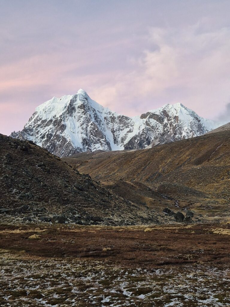 Ce qui complexifie l’équation, c’est l’altitude moyenne autour 4500m, avec plusieurs cols au-delà des 4900m dont le Palomani à 5200m et des bivouacs très hauts. L’altitude, le poids des affaires et l’enchaînement des cols rend le trek particulièrement exigeant. Camille peinera comme rarement dans les ascensions, sans doute un contrecoup au tortueux Choquequirao.
