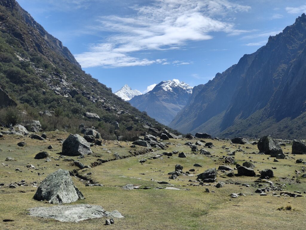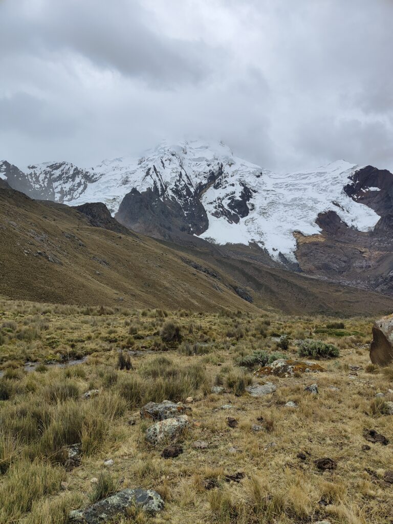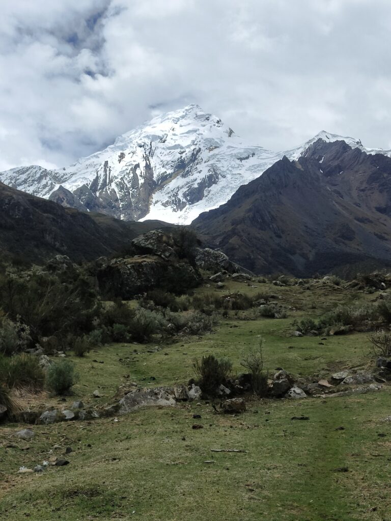 Le sentier plonge ensuite dans la vallée d’Ishinca, célèbre auprès des andinistes pour les immenses glaciers Tocllaraju et Palcaraju.
