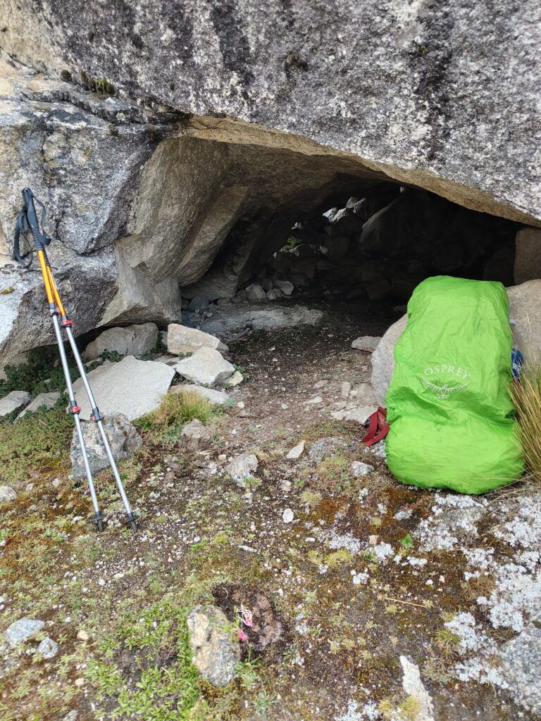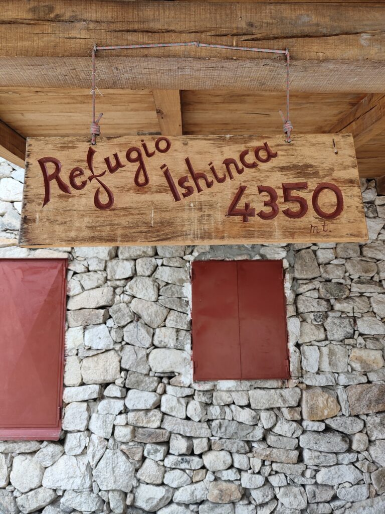 Une fois en bas, je découvre le refuge Ishinca, fermé à cette période. Néanmoins il est possible de bivouaquer autour et de se servir du préau comme abri en cas de pluie.