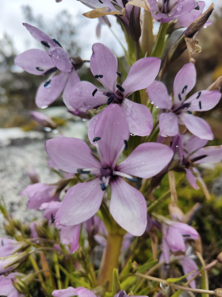 Une petite lagune existe dans la montée et nécessite également un détour pour l’entrevoir, masquée par des reliefs rocheux. La montée est raide et je ne parviens pas à discerner le chemin, les cairns étant assez rares dans la première moitié. Je fais sans doute plus de chemin que nécessaire, je serpente entre les ruisseaux et zones humides. Les jambes n’y sont toujours pas, je marque des pauses régulières. Je n’ai ni l’énergie ni l’envie, avec cette météo ingrate.